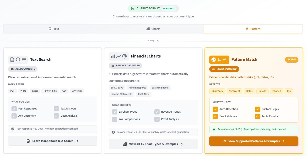 EPH4 provides different outputs based on the information that you provide, obtain dynamic live charts, plain text or regex answers to analyze specific requirements such as emails, percentages or phune numbers from a specific document.